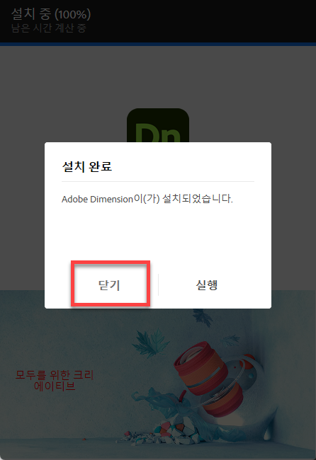 이제 인증까지 모두다 끝이 났다면 Adobe Dimension을 실행해 주시면 됩니다.